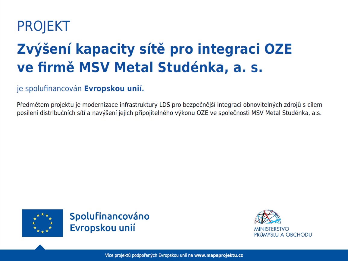 The project aims to modernize the LDS infrastructure for safer integration of renewable energy sources with the goal of strengthening distribution networks and increasing their renewable energy capacity at MSV Metal Studénka, a.s.